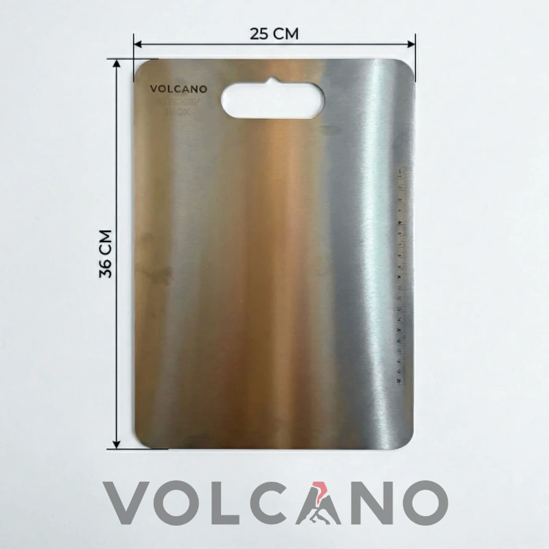 Volcano Kesme Tablası’nın üzerinde yer alan 20 cm’lik özel işlenmiş cetvel, mutfakta pratik ölçüm yapmanızı sağlar: